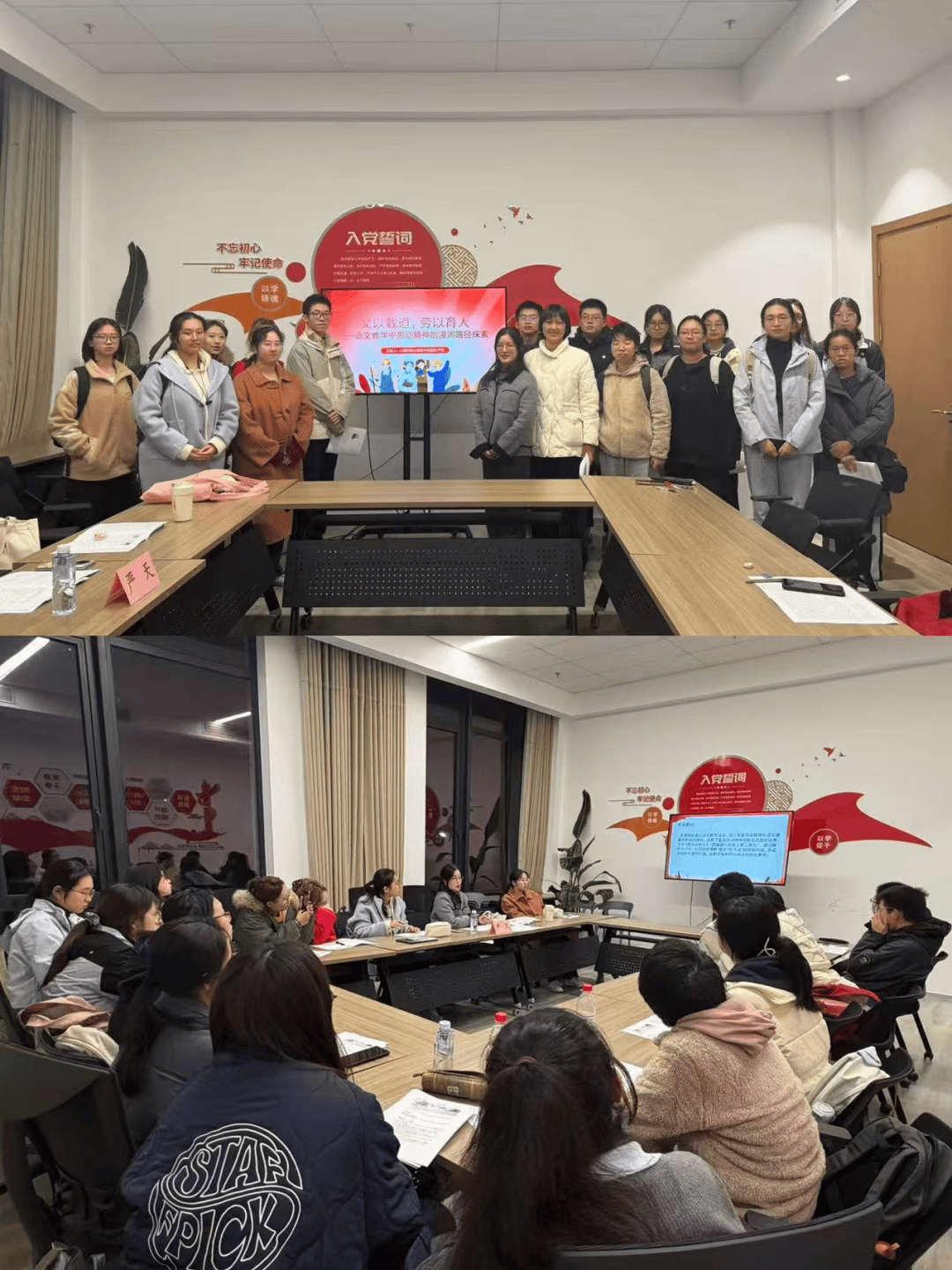 11月26日晚,人文学院“文以载道,劳以育人——语文教学中劳动精神的浸润路径探索”专题讲座在奉贤校区新大发A104顺利召开,讲座邀请了上海市鞍山初级中学教师、人文学院2012级中文师范专业校友严天作为主讲嘉宾,2024与2025级汉语言文学师范生参与活动。严天老师系统阐述了课程的设计理念,并围绕课堂构建、实践活动等五个维度,提出将劳动精神有机融入语文教学的具体路径。
